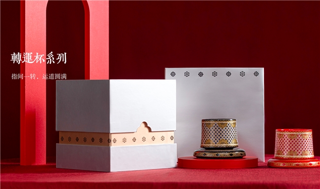 “飞黄腾达·小夜灯”则以山海经瑞兽“飞黄”为型,巧妙融合龙鳞纹饰与宋代“飞黄马钱”元素,轻轻拨动便呈现“飞黄腾达,马上转钱”的生动趣意。备受瞩目的“转运杯系列”则凭借独家专利实现杯身自由转动,寓意时来运转,其内嵌的“飞黄马钱”亦可取下作为指尖陀螺,让好运在掌心流转。